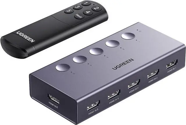 UGREEN HDMI Switch 5 in 1 Out 4K@60Hz, HDMI Splitter with Remote 5 Port Switcher Selector Box Support 3D CEC HDR HDCP2.2 Compatible with PS5/4/3 Xbox Nintendo Switch Roku TV Fire Stick Grey