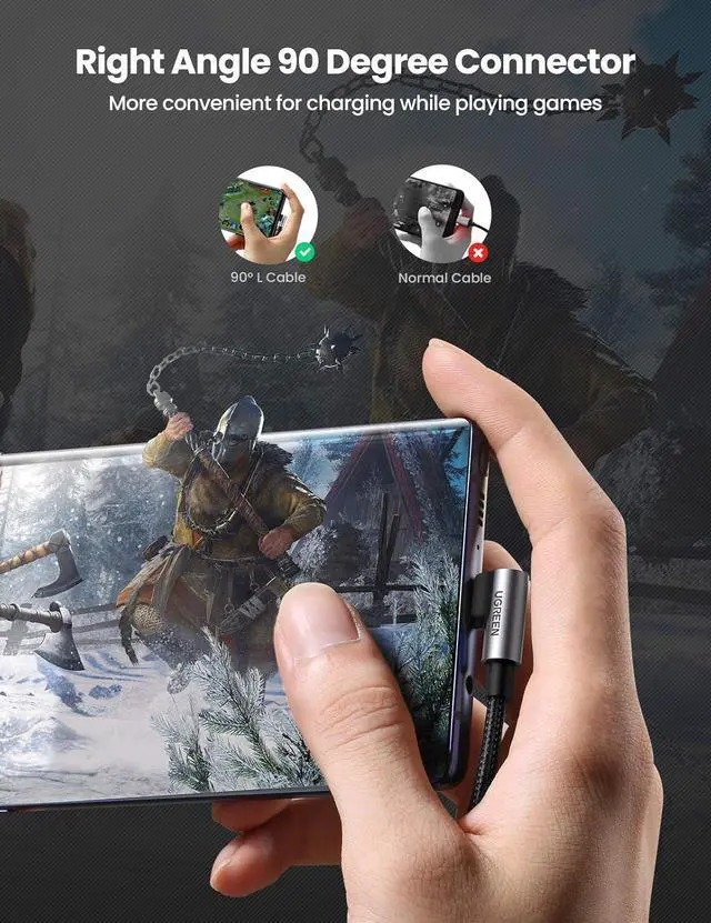 UGREEN USB to USB C Cable 90 Degree USB C Fast Charging Cord Compatible with iPhone 16/16 Plus/16 Pro/16 Pro Max/15/Samsung Galaxy S10/S10+/Pixel 7/6a/LG G8/G7/Pixel/Switch, etc. 10FT