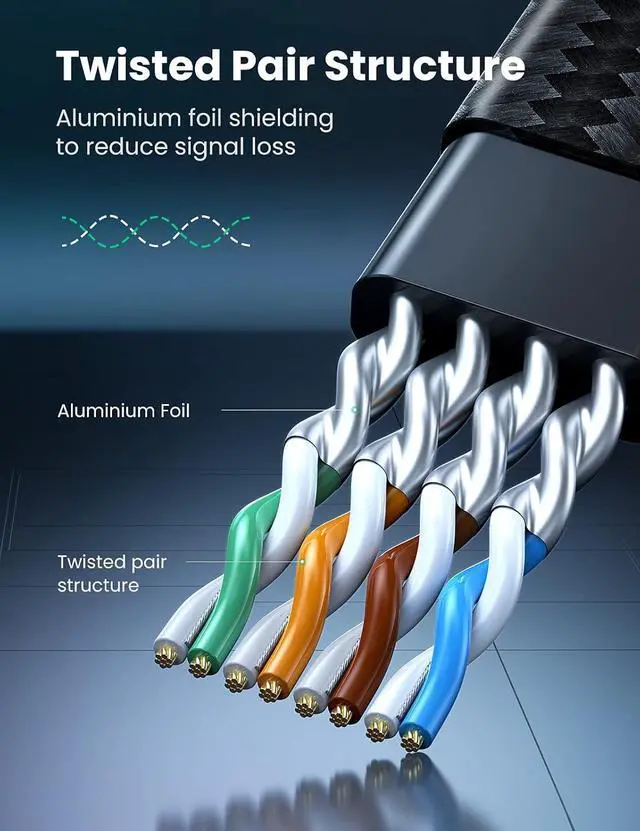 Excellent Anti-interference: UGREEN Gigabit Cat 8 ethernet cable are designed with 4 shielded foiled twisted pairs (U/FTP), 26AWG pure copper core and gold-plated connectors. This design can greatly reduce interference and crosstalk from adjacent pairs and other cables, making network speed faster and more stable.