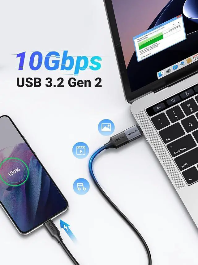 10Gbps Super Fast Data Transfer: The 10Gbps high-speed data transfer allows you to quickly transfer files via USB A Female to USB C Male Adapter in seconds. Note: To achieve 10Gbps speed, please make sure the connected devices support 10Gbps transmission speed, and the connected cable should be within 3.3FT