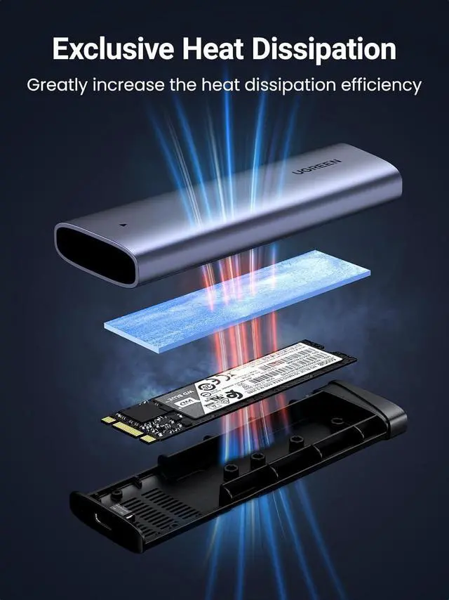Broad Compatibility: The UGREEN M.2 NVMe SSD enclosure is specially designed to support NMVe protocol M/B&M keys and for 2230/ 2242/ 2260/2280 size SSDs up to 8TB. The M.2 NVMe enclosure is applicable for Windows, Mac OS, Linux, Android, IOS systems.(Does not support SATA NGFF SSD mSATA SSD and SSD with heatsink)
