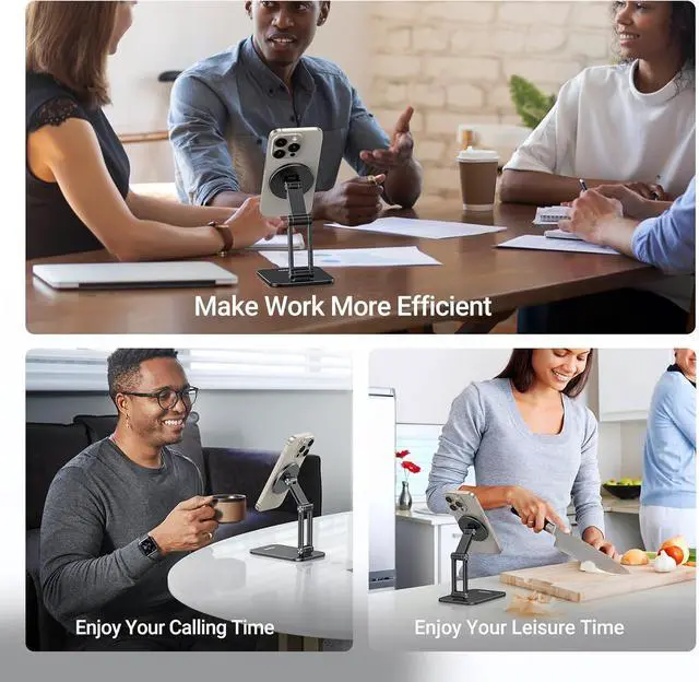 Suitable for Most Phones: The magnetic cell phone stand can be used directly for the iPhone 17 Air 16 15 14 Pro Max 13 12 series and MagSafe cases. The magnetic metal ring included in the package can be attached to iPhone 11 and below, Android phones, and cases for a MagSafe effect that keeps your phone completely steady and stable