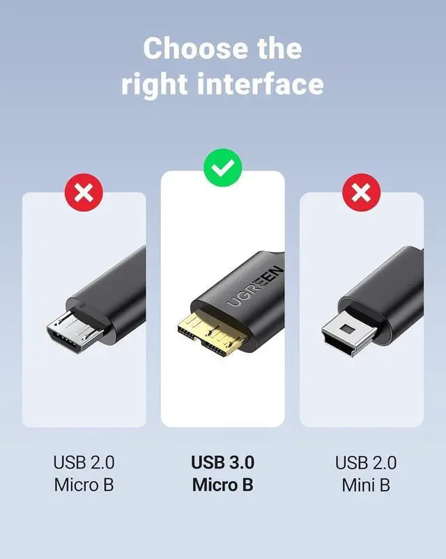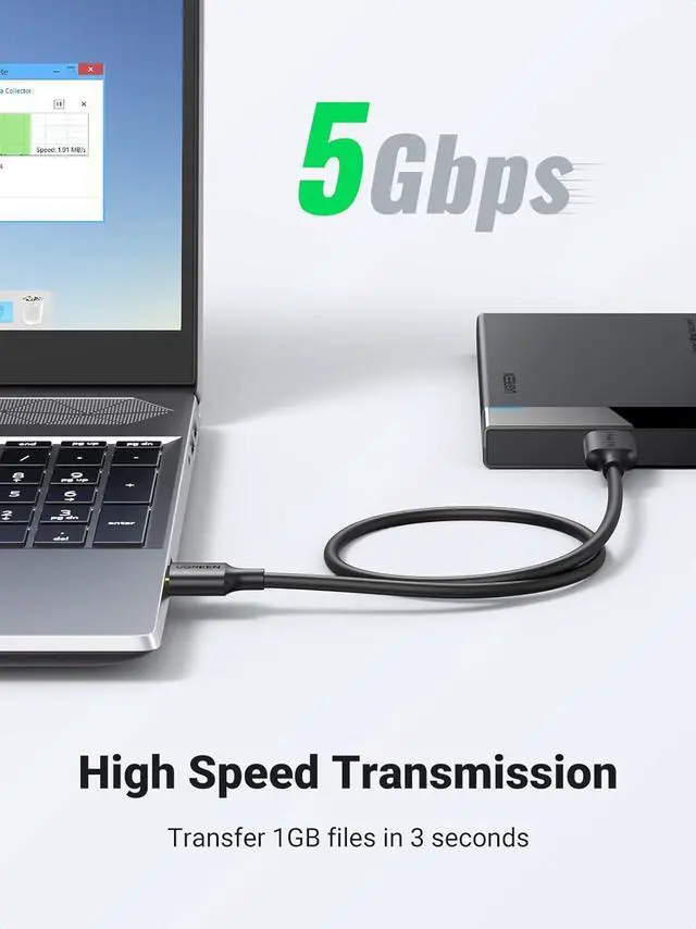 5 Gbps Transferring Speed: UGREEN micro USB 3.0 cable supports USB 3.0 standard data transfer rate at up to 5 Gbps, 10x faster than USB 2.0. HD movies can be transferred in just seconds.