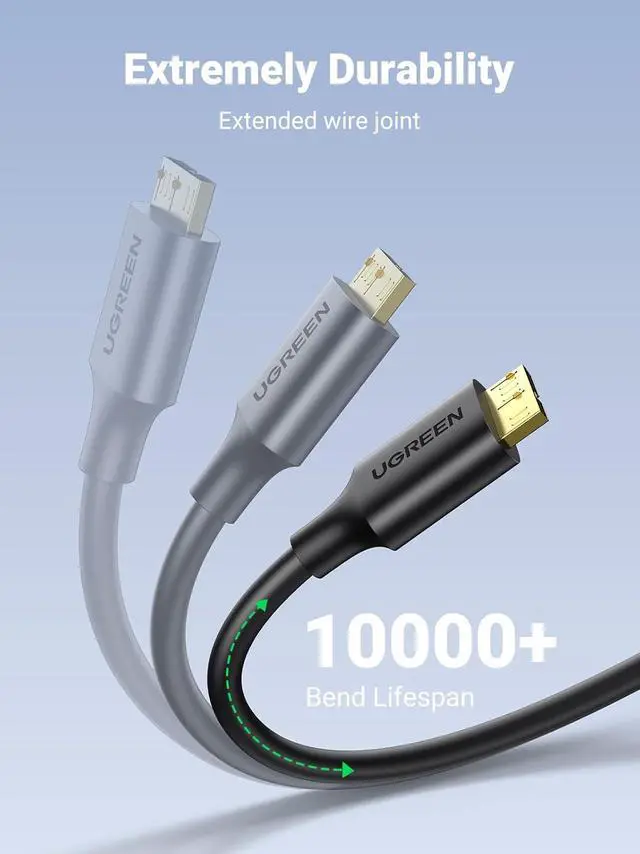 5 Gbps Transferring Speed: UGREEN micro USB 3.0 cable supports USB 3.0 standard data transfer rate at up to 5 Gbps, 10x faster than USB 2.0. HD movies can be transferred in just seconds.