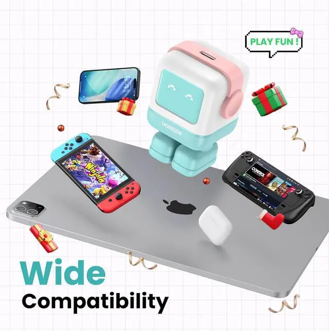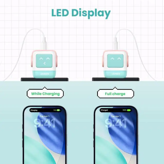 Fun & Smart DesignStand out with the fun robot-shaped charger. The intelligent LED screen shows real-time charging status and expressions, while the compact design fits neatly on your desk or nightstand. A stylish and functional accessory for your home or office.