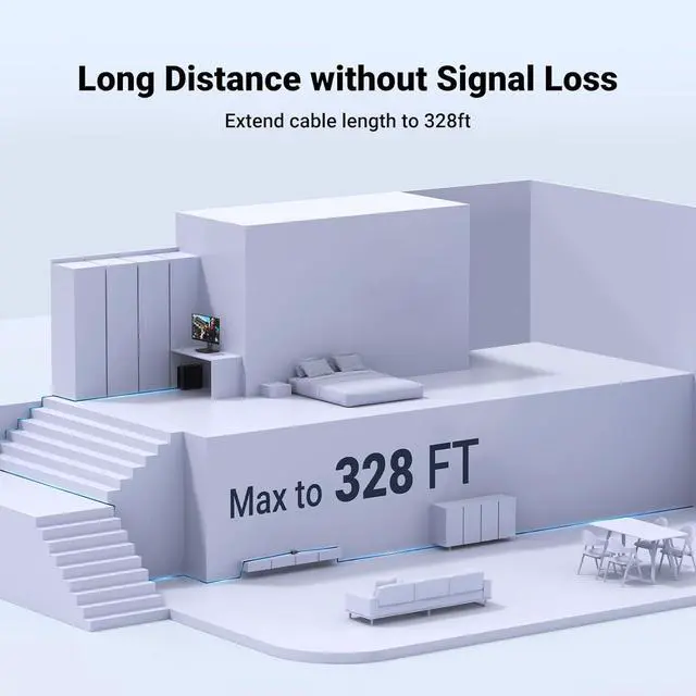 328ft Effectively Extend: UGREEN ethernet extender is ideal for extending ethernet connection, and support up to 328ft long-distance transmission. Wire the house flexibly and smartly. Never worry about the network cable is not long enough anymore