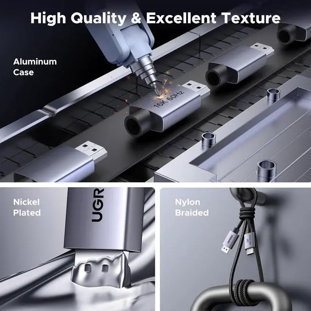 Nylon & Alu Case for Ultra Durability: UGREEN DisplayPort cable port with no buckle design can prevent accidental damage. DP cable 2.1 is made of 28AWG tinned copper and tinplate which features triple shielding and resistance with EMI. Aluminum alloy housing is resistant to rust and can accelerate heat dissipation. The Display Port cord has a strong nylon braided jacket, which is 10X more durable than PVC. It can provide higher connectivity and longer service life for better signal transmission
