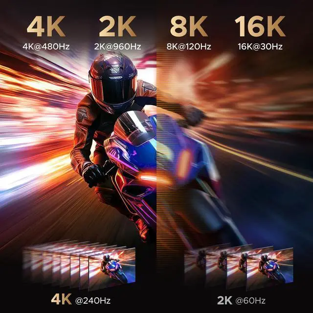 16K Clarity DisplayPort 2.1 Cable: The UGREEN 16K DisplayPort cable supports an astonishing 16K resolution at 60Hz, 8K@240Hz, 4K@480Hz. And backward compatible with Display Port 1.4, 1.2. It connects from DP to DP for better visual experience and there is no need for a driver or software. Note: Please distinguish the ports. Not compatible with HDMI or Mini DP