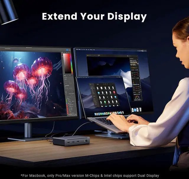 Dual 4K@60Hz or Single 8K Display: The Thunderbolt 4 Docking Station can extend up to two 4K@60Hz displays or a single 8K@30Hz display for Windows laptops, two 4K@60Hz displays or a single 4K@60Hz display for Macbook with Pro/Max version M-Chips & Intel chips. Please note: For MacBooks with basic M-Chips, the docking station can extend to one 4K@60Hz display. Greatly improve your work efficiency and display experience.
