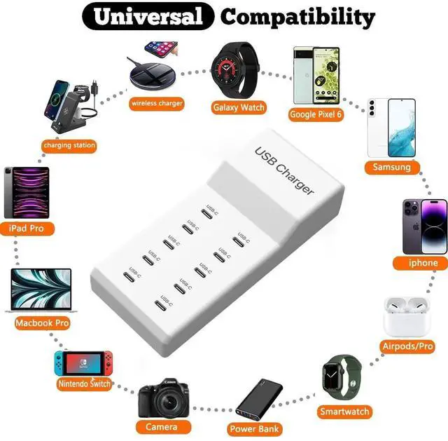 Centralize and organize your home or office with a single, power-saving 10-Ports USB, quickly and easily with the smart USB ports.