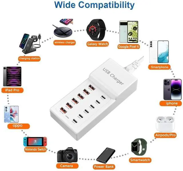 ![Alt view image 5 of 6 - USB Charging Station, 12 Ports USB C Charger, 50W/10A MultiPort Charging Block[6 USBC+6 USBA], Compatible with iPhone 16/15/14/13/Samsung/Tablet/Watch/Headphones and Multiple Charger Plug](https://c1.neweggimages.com/productimage/nb640/C1E6S2510100ENP0K98.jpg)