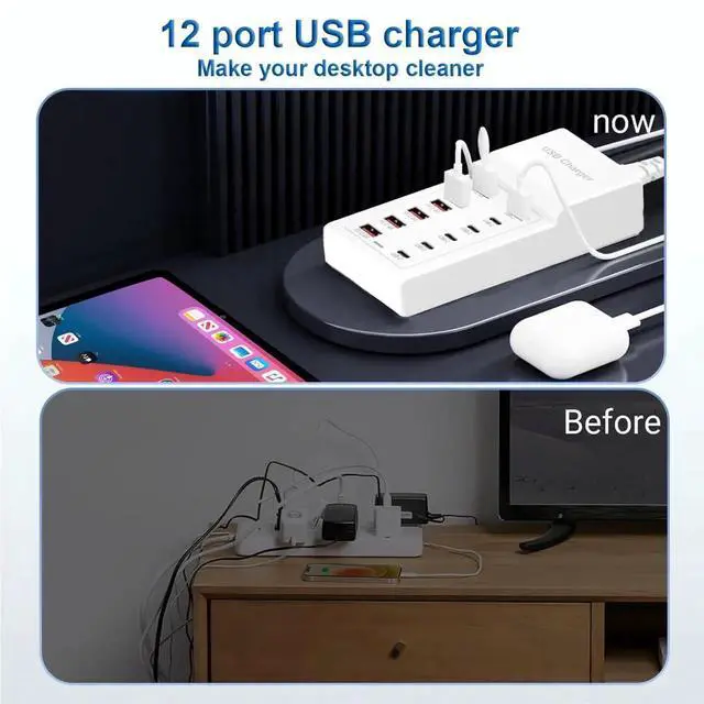 ![Alt view image 3 of 6 - USB Charging Station, 12 Ports USB C Charger, 50W/10A MultiPort Charging Block[6 USBC+6 USBA], Compatible with iPhone 16/15/14/13/Samsung/Tablet/Watch/Headphones and Multiple Charger Plug](https://c1.neweggimages.com/productimage/nb640/C1E6S2510100ENP2KEC.jpg)