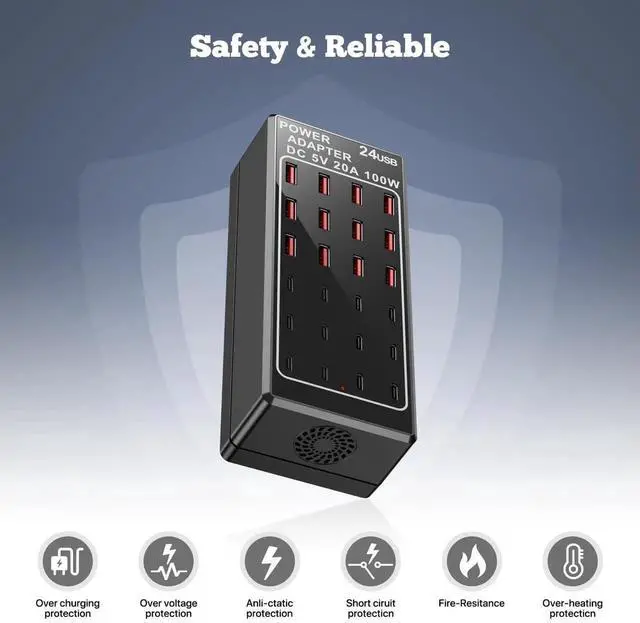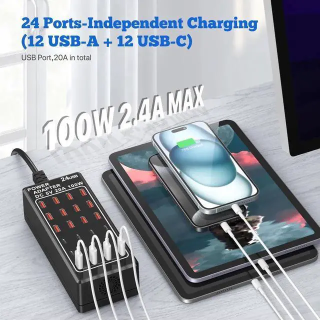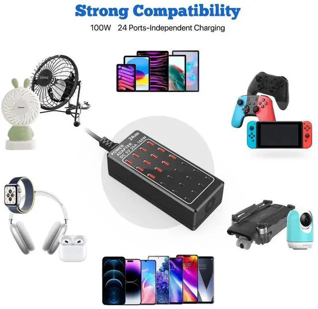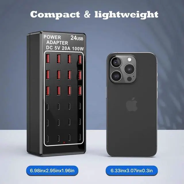 | Included Components | 1 x 24 Ports 100W USB C Charging Station, 5ft / 1.5m ultra long detachable Power Cord. |