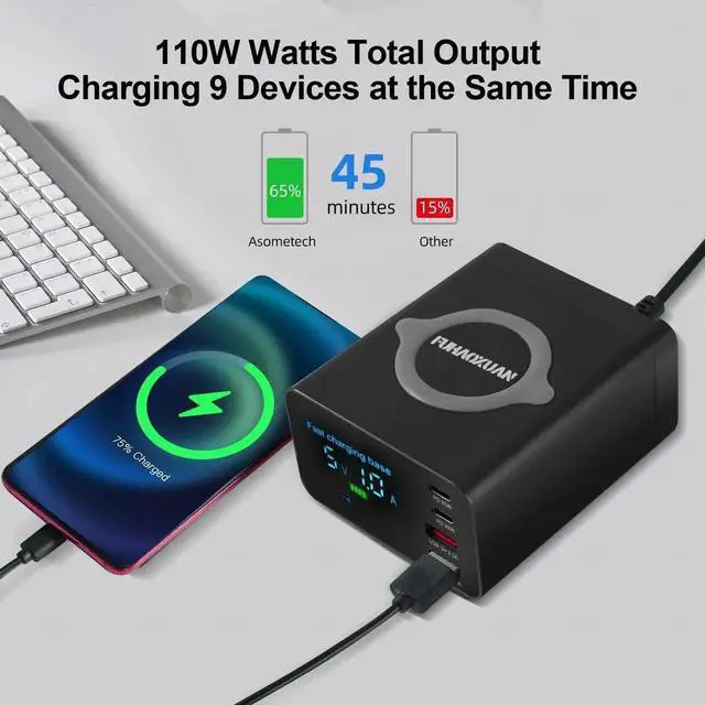 Space-Saving & Stylish Compact yet powerful, this charging station fits perfectly on your desk, nightstand, or kitchen counter, blending seamlessly with any decor.