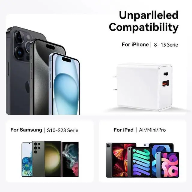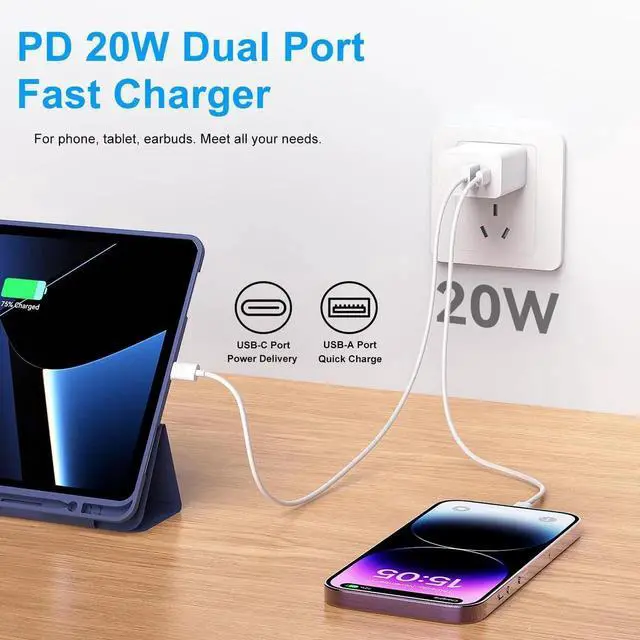 Fast Charging: Supporting 20W Max power output, charger block fast charging for iPhone 14, for Samsung Galaxy series (please use original cable to charge).