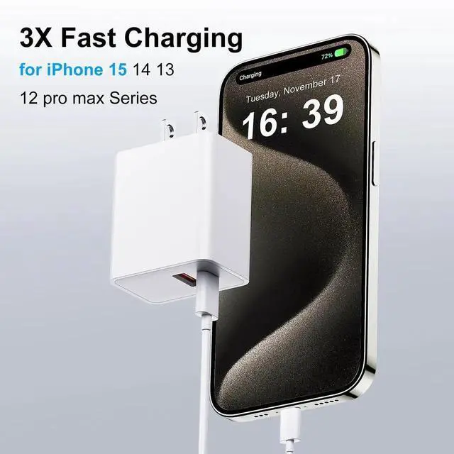 When used with the original charging cable, supports fast charging for iPhone 17/iPhone 17 Pro/iPhone 17 Pro Max/iPhone Air/iPhone 16/16 Plus/16 Pro/16 Pro Max/iPhone 15/15 Plus/15 Pro/15 Pro Max/iPhone 14/14 Plus/14 Pro Max/iPhone 13/iPhone 13 Pro/iPhone 13 Pro Max/iPhone 12/iPhone11/XS/XR/X/8 Plus/8.