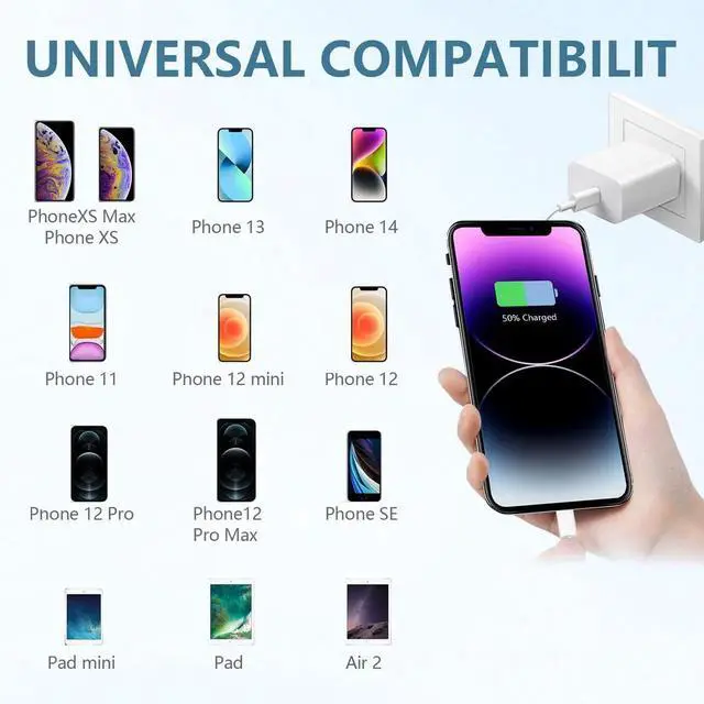 20W USB-C Wall Charger Block with 6Ft USB-C to Lightning Cable - Fast Charging for iPhone, Compact & Reliable Power up your devices in record time with our 20W USB-C Wall Charger Block and 6Ft USB-C to Lightning Cable. Designed specifically for iPhone users, this powerful charging combo delivers ultra-fast charging for i.Phone 14, 13, 12, 11, and other lightning-compatible devices. The 20W USB-C PD (Power Delivery) technology ensures your device charges up to 50% in just 30 minutes, making it perfect for busy lifestyles. The included 6ft USB-C to Lightning cable is made with premium materials for durability and flexibility, offering plenty of length for comfortable use at home, in the car, or while traveling. Compact and lightweight, the wall charger is perfect for travel, easily fitting into your bag or pocket. Its also universally compatible with other USB-C devices, such as iPad, AirPods, and more. Built with advanced safety features, including over-current, over-voltage, and temperature protection, this charger ensures your devices stay safe while charging efficiently. Upgrade your charging setup with this reliable, high-speed solutionideal for Apple enthusiasts who demand both performance and convenience. Get yours today and experience the difference!