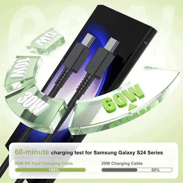 [45W USB-C Super Fast Charger] This powerful 45W USB-C charger is specially designed for Samsung Galaxy S25/S24/S23 Ultra/Plus. It features a 45W Power Delivery (PD) port and includes three USB-C to USB-C cables (3ft, 6ft, and 10ft). Charge your Samsung phones/ android device from 0% to 100% in just 60 minutes up to 3x faster than a standard type c charger.