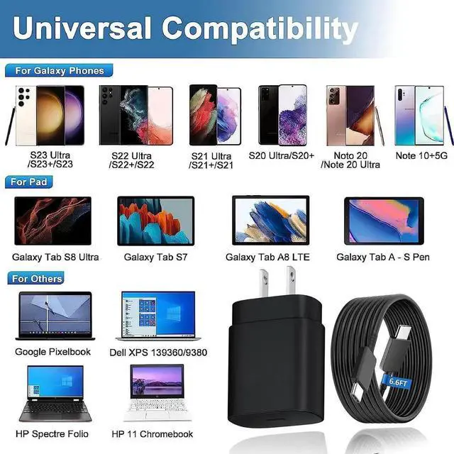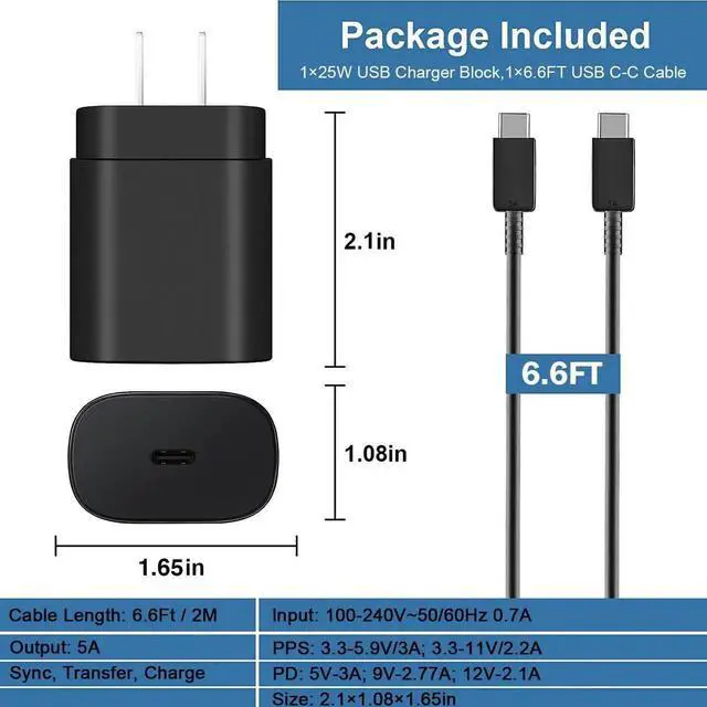 | Included Components | 25W Super Fast Type C Charger Block and 6.6Ft USB-C to USB C 2.0 Cable |