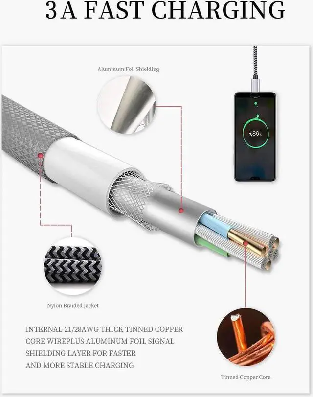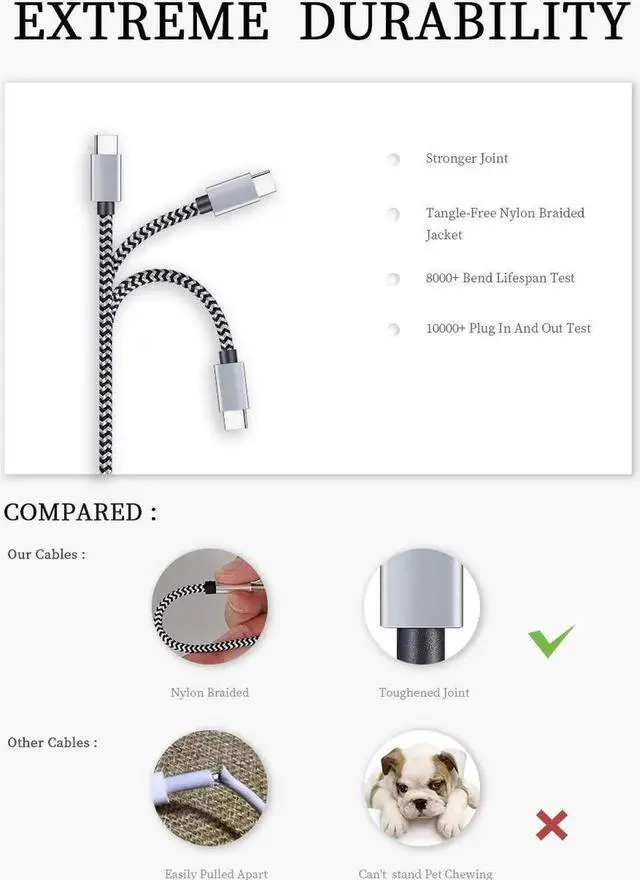 Certified Safety: This USB-C cable has electronic safety certifications that comply with appropriate standards, You don't have to worry about the quality of this cable at all.