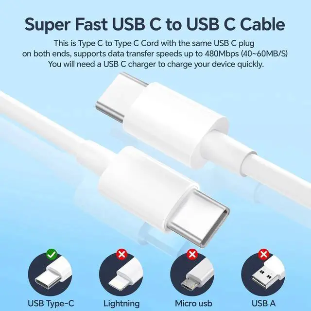 * This is the USB C to USB C Cable NOT USB A to USB C Cable. To reach fast charge, please use the USB-C wall charger.