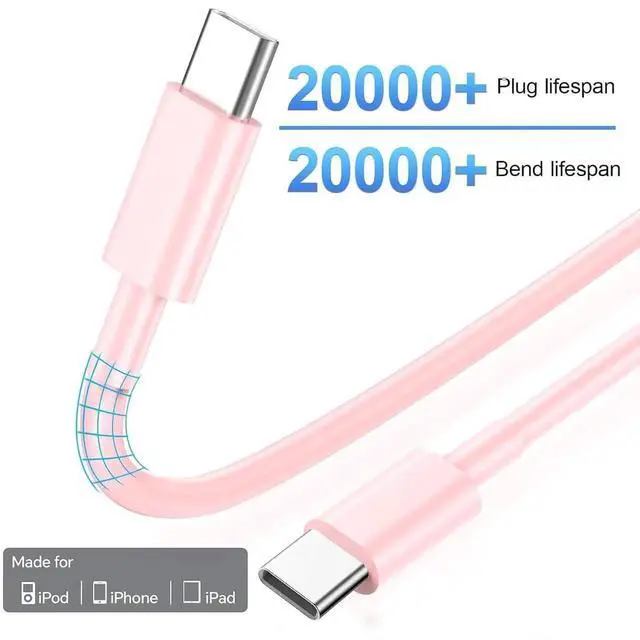 [Superior Durability]: The USB C to C Fast Charging Cable is constructed with a robust charger shell and non-tangle wire material,, capable of enduring over 30,000 bending tests. Additionally, it features advanced laser welding port technology to prevent connector breakage and wire exposure. The cable ends are reinforced with an extra protective layer to further enhance durability and prevent fraying