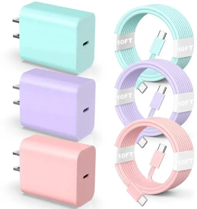 JAENFONG Compatible with iPhone 1716 15 Fast Charging Cable 10Ft,3Pack 60W USB C to USB C Fast Charging Cable Cord for Phone 17 16 15/15 Pro/15 Pro Max/15 Plus, Pad Pro,MacCBoOok Air, Samsunng