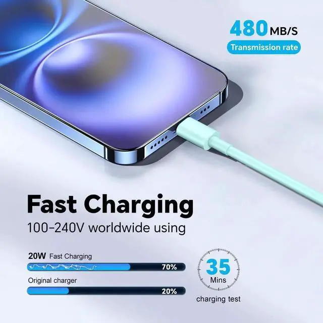 [60W Fast Charging & Data Transfer]:This USB C Cable adopts the latest USB-C technology and has a charging speed of 60W.it supports PD3.0/QC3.0/QC4.0 fast charging and 480Mbps data transfer, and can charge your iPhone 16/15 to more than 70% in 30 minutes,, whether it's for work, play or travel, this cable can help you do more with less..