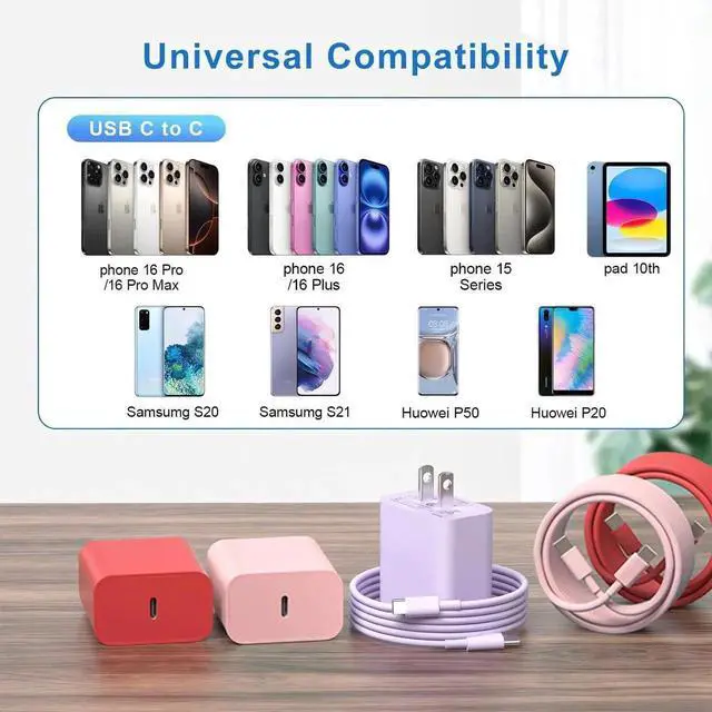 [What You Get]:You can get RedPurplePink 60W 10FT USB C to USB C Fast Charging Cable and RedPurplePink 20W 3.0PD Type C Charging Block, ,and provide all-weather friendly customer consultation. If you have any problems, we will solve your problems within 24 hours.