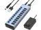 Powered USB Hub 3.0, 10-Port Aluminum USB Hub Splitter (Support Smart Charging + Faster Data Transfer) with Individual LED On/Off Switches for Mac, PC, Laptop
