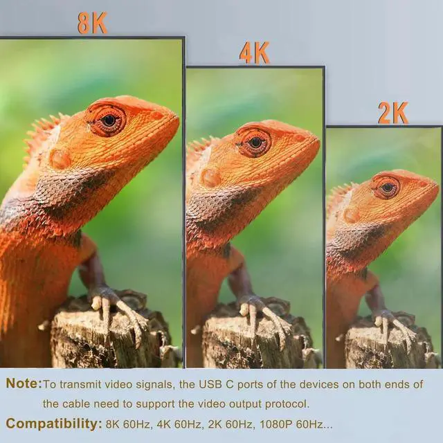 USB4 to USB4 Cable supports up to 8K 60Hz resolution and is backward compatible with 4K, 2K, and 1080P. It provides the best viewing experience through high-resolution videos and ultra-high definition.