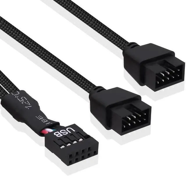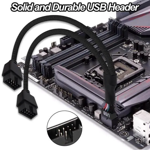 USB female to 9 pin header splitter uses nylon braided wire and aluminum foil shielding to prevent interference and wear, and gold-plated connectors to prevent corrosion, ensuring long-term stable connection and being more durable than ordinary cables.