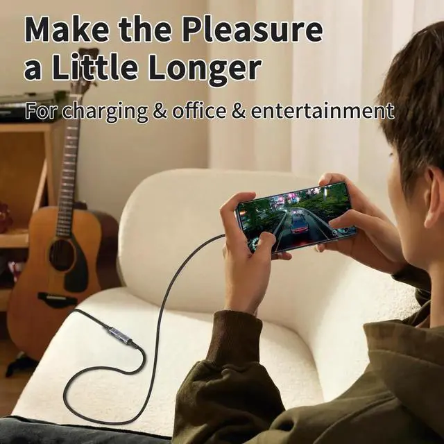 100W Ultra-Fast Flash Charging, Safe and Reliable. The usbc extension cable is equipped with QC 3.0 technology and supports 100W (20V/5A) PD fast charging. The charging process is stable and won't damage the device. Please note that both the device and the charger need to support PD charging, and the actual charging speed depends on the performance of both
