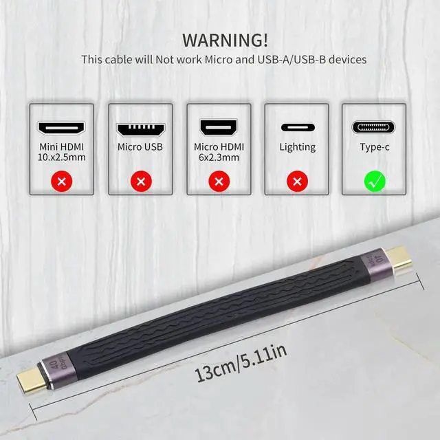 Package includes: Flat USB C Male to USB C Male Short Cable