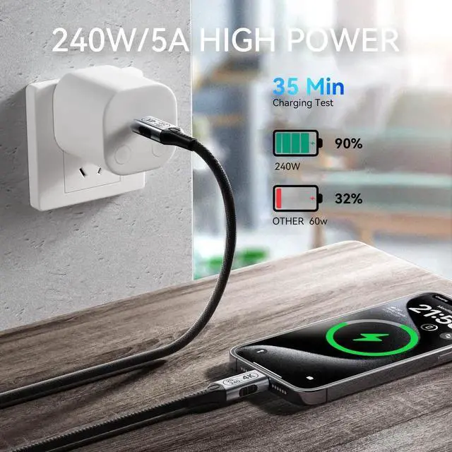 Additional Features- Exceptionally Durable and Wear-Resistant: The nylon-braided USB C to USB C cable is tough and built to last. Its double-sided USB-C connectors, crafted via secondary injection molding, are highly resistant to bending, perfect for frequent use. The aluminum shell offers protection, while high-purity copper conductors with triple shielding guarantee stable charging and reliable data transfer when required, ensuring durability and giving you peace of mind