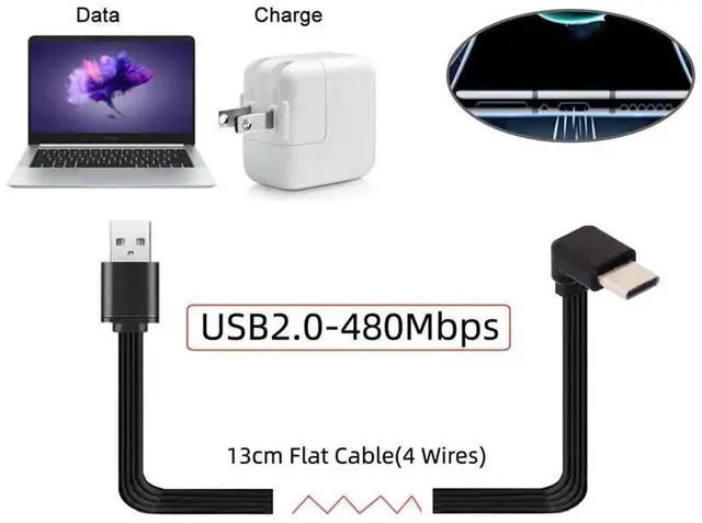 • USB 2.0 Male to USB-C Type-C Up Down Angled 90 Degree Data Flat Slim FPC Cable for FPV & Disk & Phone