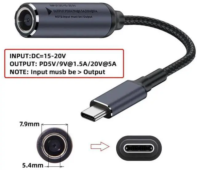 Input: DC 15V-20V ; Output: 100W max. (5V/1.5A,9V/1.5A,20V/5A)