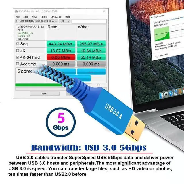 Offers a throughput of up to 5Gbps when used with a USB 3.0 host and device,an 10x the capability of USB 2.0.
