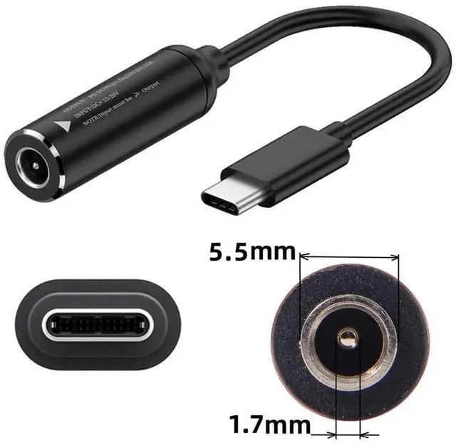 JAENFONG USB-C Type-C to DC Jack 5.5x1.7mm Input Power Cable Plug Charge Cord for Laptop Phone PD9V 15V 20V