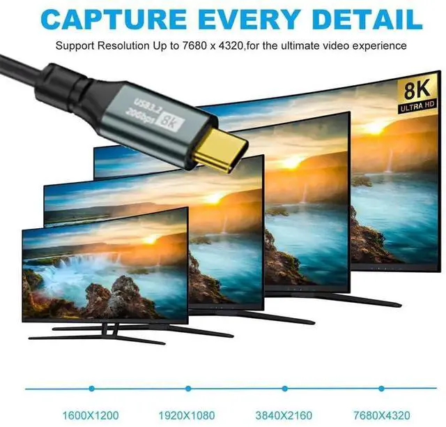 5) 8K/5K Ultra HD Video Output: This USB4 Cable enables to connect from your USB4 or thunderbolt3/4 Port equipped Devices to your USB-C Monitors, It supports Single 8K@60hz, 5K@60Hz or 4K@60Hz max. video Resolution in your external displays.(please make sure your monitor's Type-c port support DP Alternate Mode for Video.)