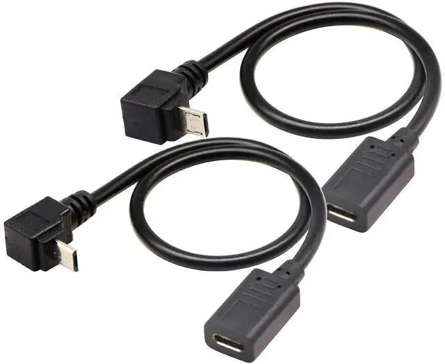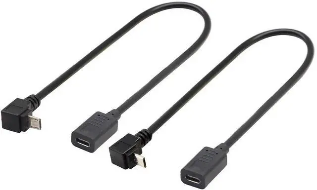Size:(30CM/12inch) Colour:(Black ) Package Quantity:(2packs) Features:USB Type-C Female to 90 Degree Up & Angled Down Micro USB Male Extension Cable