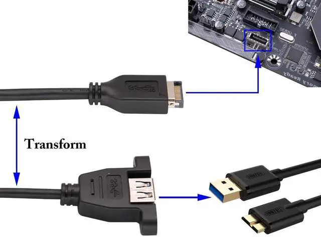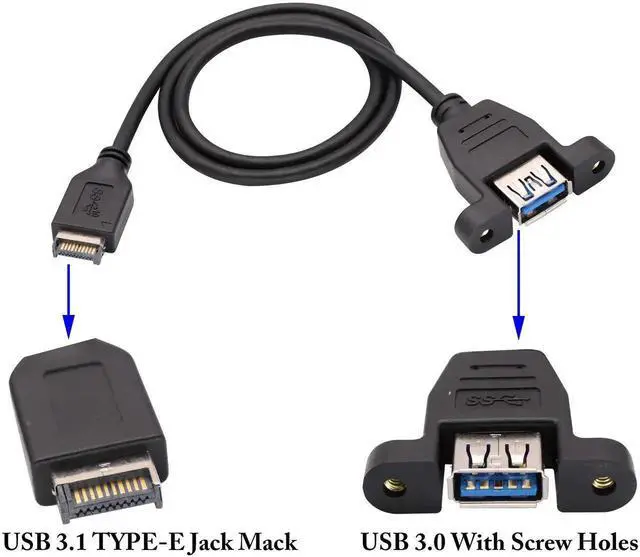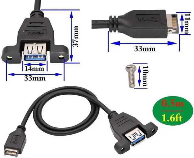 USB 3.1 FrontPanel Header to USB 3.0 Type-A Female Extension Cable 50cm Panel Mount Type Connector1: Type-A USB3.0 Female Connector2: USB 3.1 Front Panel Header