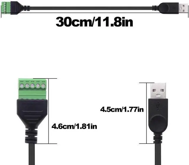 JAENFONG USB 2.0 A Screw Terminal Block Cable USB 2.0 Male to 5Pin Screw Terminal Block Solderless Adapter Cable with Shield terminals Pluggable Type A Converter Extension Cord 30cm-2Pcs