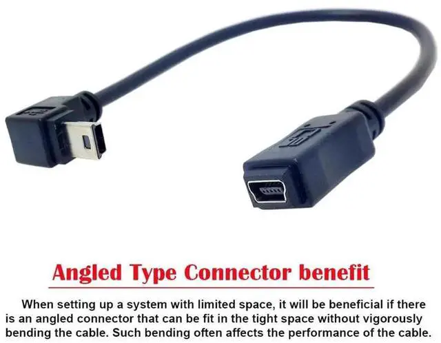 Used to connect USB Mini cables in tight fit applications. Can work for all mini USB 5pin device extension.