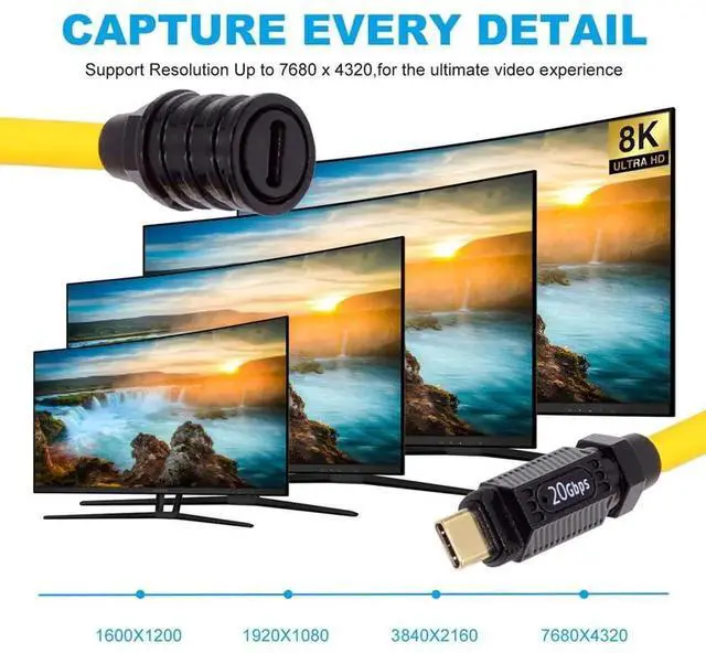 8K/5K Ultra HD Video Output: This USB4 Cable enables to connect from your USB4 or thunderbolt3/4 Port equipped Devices to your USB-C Monitors, It supports Single 8K@60hz, 5K@60Hz or 4K@60Hz max. video Resolution in your external displays.(please make sure your monitor's Type-c port support DP Alternate Mode for Video.)