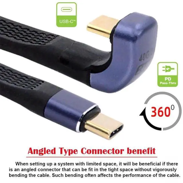 5) Opposite U Shape Back Angled: Type-C connector is Opposite U Shape BackAngled. The angled type Allowing you to connect it to a female port, even if space around the port is limited.