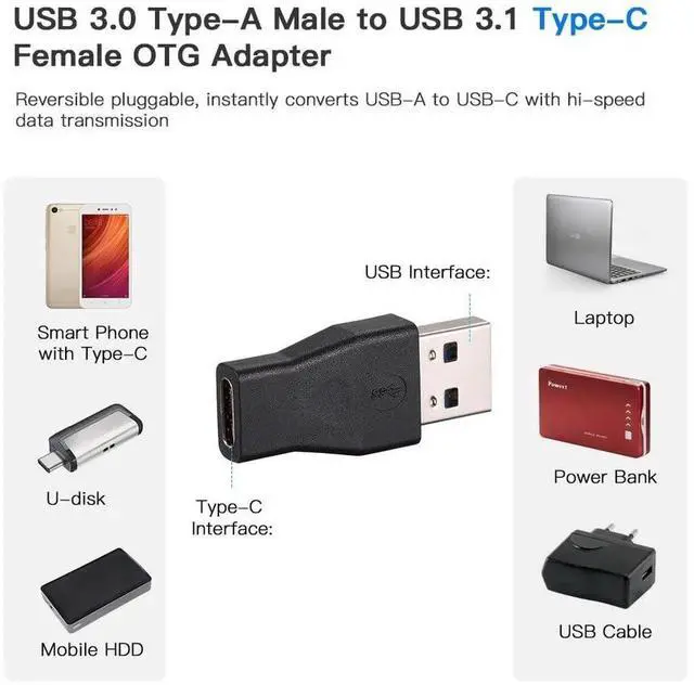 JAENFONG USB 3.1 USB-C Type C Female to USB 3.0 A Male Data Adapter for Tablet Mobile Phone MacBook