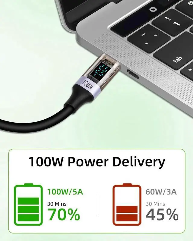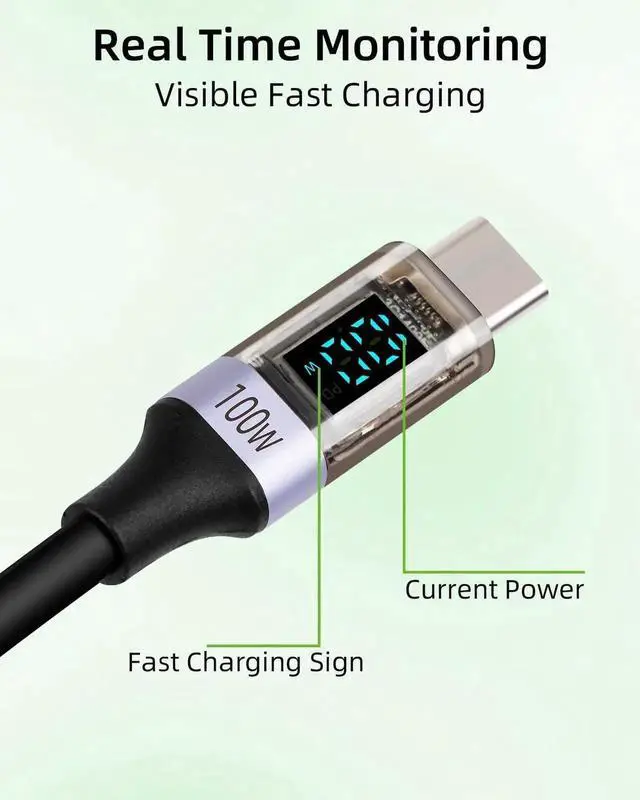 USB C charging cable, with only digital display function, can monitor the wattage information of your charging in real time while charging, so that you can see at a glance