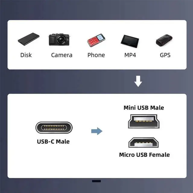JAENFONG USB-C USB2.0 Type C Female to Micro Mini USB Male Power 480Mbps Data Adapter with Chain Holes 2pcs/lot