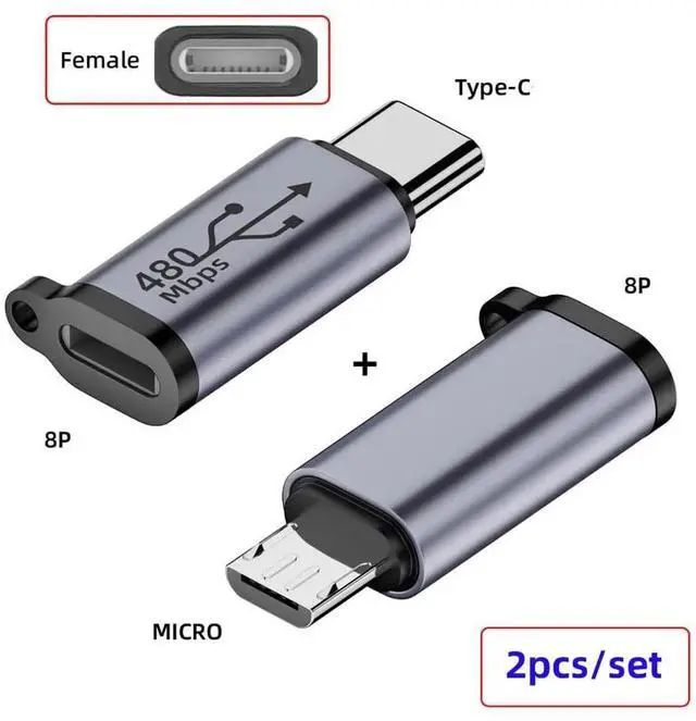 • Convenient 2pcs/lot USB2.0 8P Female to Micro USB Type-C USB-C Male Power Adapter